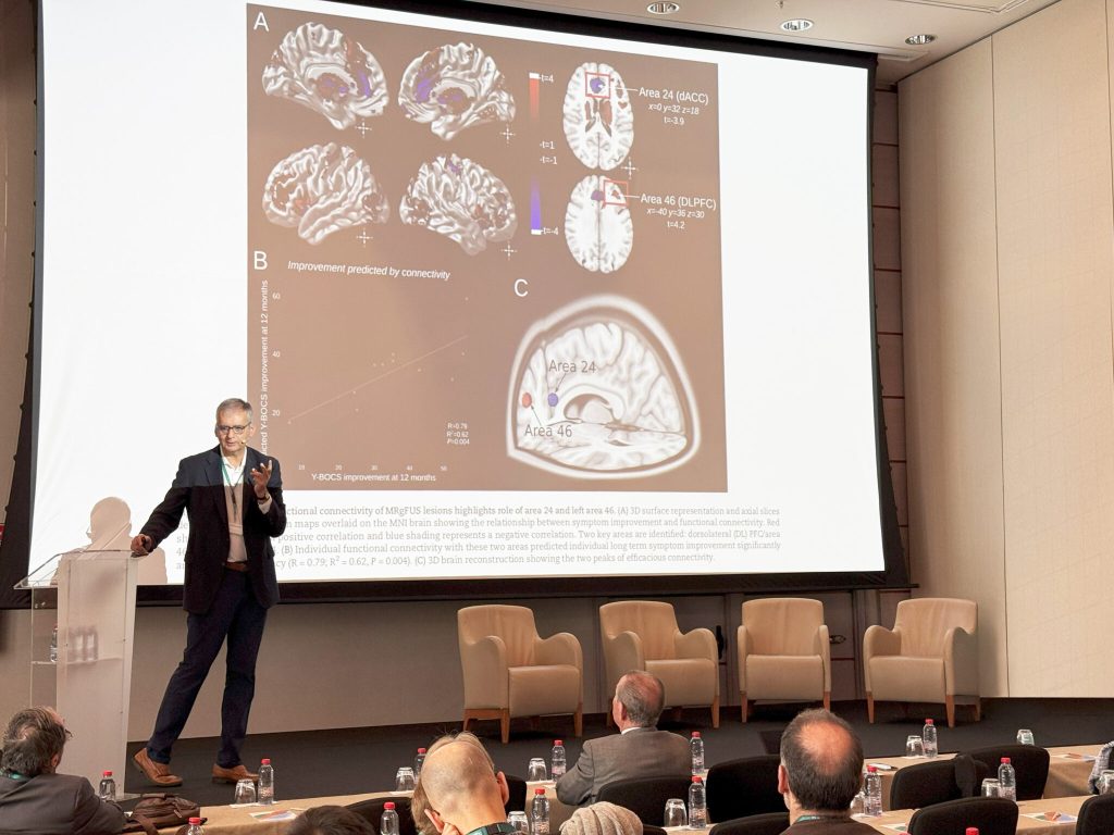 En el encuentro, el Dr. Andrés Lozano, profesor de Neurocirugía de la Universidad de Toronto y director de Neurociencias de Ascires, impartió una ponencia sobre las nuevas opciones de tratamiento en el ámbito de las enfermedades mentales que se abren con los ultrasonidos: “En Canadá ya hemos empleado esta técnica para tratar a pacientes con enfermedades mentales. La respuesta ha sido muy positiva en personas con trastorno obsesivo compulsivo (TOC) muy severo. A diferencia del temblor, la respuesta no es inmediata, pero todos los pacientes tratados mejoraron de forma muy significativa a los 6 meses y, todavía más, al cabo de un año”, expuso el neurocirujano.